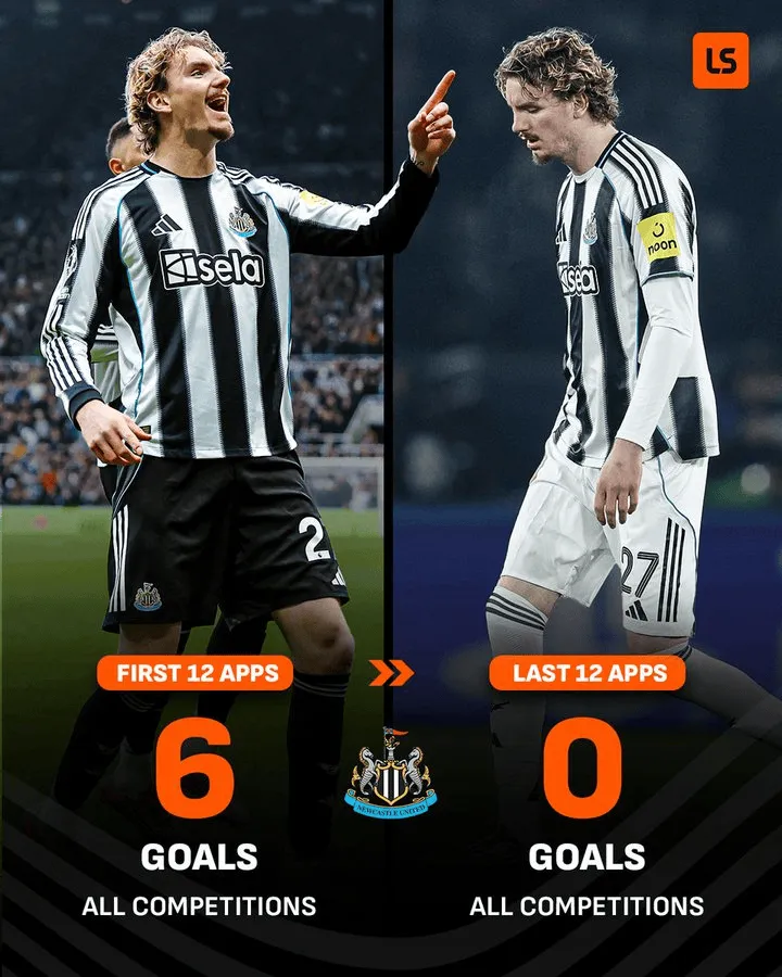 虎扑02月06日讯 根据LiveScore的统计,沃尔特马德在加盟纽卡斯尔联的前12场各项赛事中打进了6个球,但是在最近12次出场中,沃尔特马德颗粒无收。在经历了美妙的开局之后,沃尔特马德在纽卡斯尔联的境遇出现了反转。来源:X虎扑02月06日讯 根据LiveScore的统计,沃尔特马德在加...